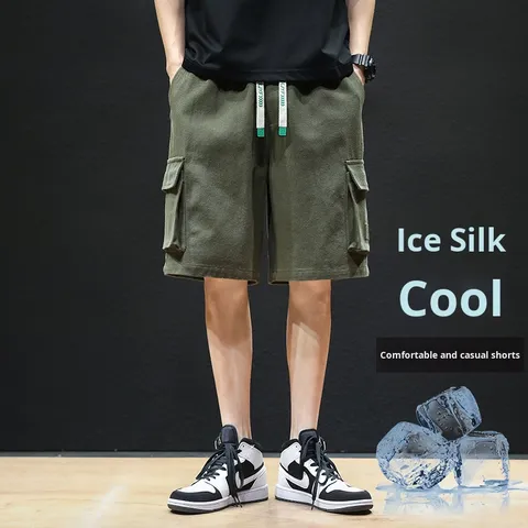 Versión Europea verano fino cinco puntos Casual suelto correr playa pantalones cortos para hombres secado rápido hielo seda cremallera mosca patrón sólido